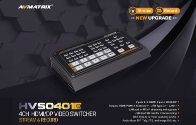 Krom nových režií řady Shark uvedla značka AVMatrix také velice kompaktní čtyřkanálový (1x DisplayPort, 4x HDMI) model HVS0401E! V těle o rozměrech…