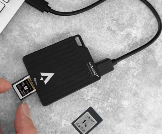 Čtečka karet Exascend EXCRCFA4 CFexpress typu A s jedním slotem poskytuje rychlost USB4 až 40 Gb/s pro karty CFexpress 4.0/2.0 typu A. Je vybavena hliníkovým chlazením, poutkem pro přenášení, magnetickým uchycením a kompaktním designem o rozměrech 71,6 x 58 x 12,6 mm a hmotnosti 78 g.