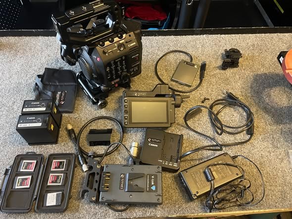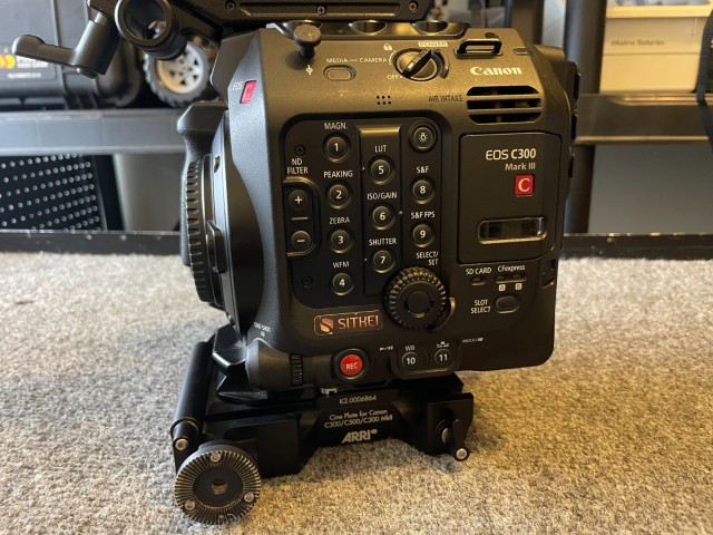 Canon C300mkIII EF Rozšiřující jednotka EU-V1 Sada držáků Canon PL 2x 512 GB a 3x 256 GB CFexpress karty 2x baterie Canon 1x čtečka karet Angelbird Základní deska ARRI Zadní deska V-lock Sluneční clona SmallRig Všechno originální příslušenství v ceně.