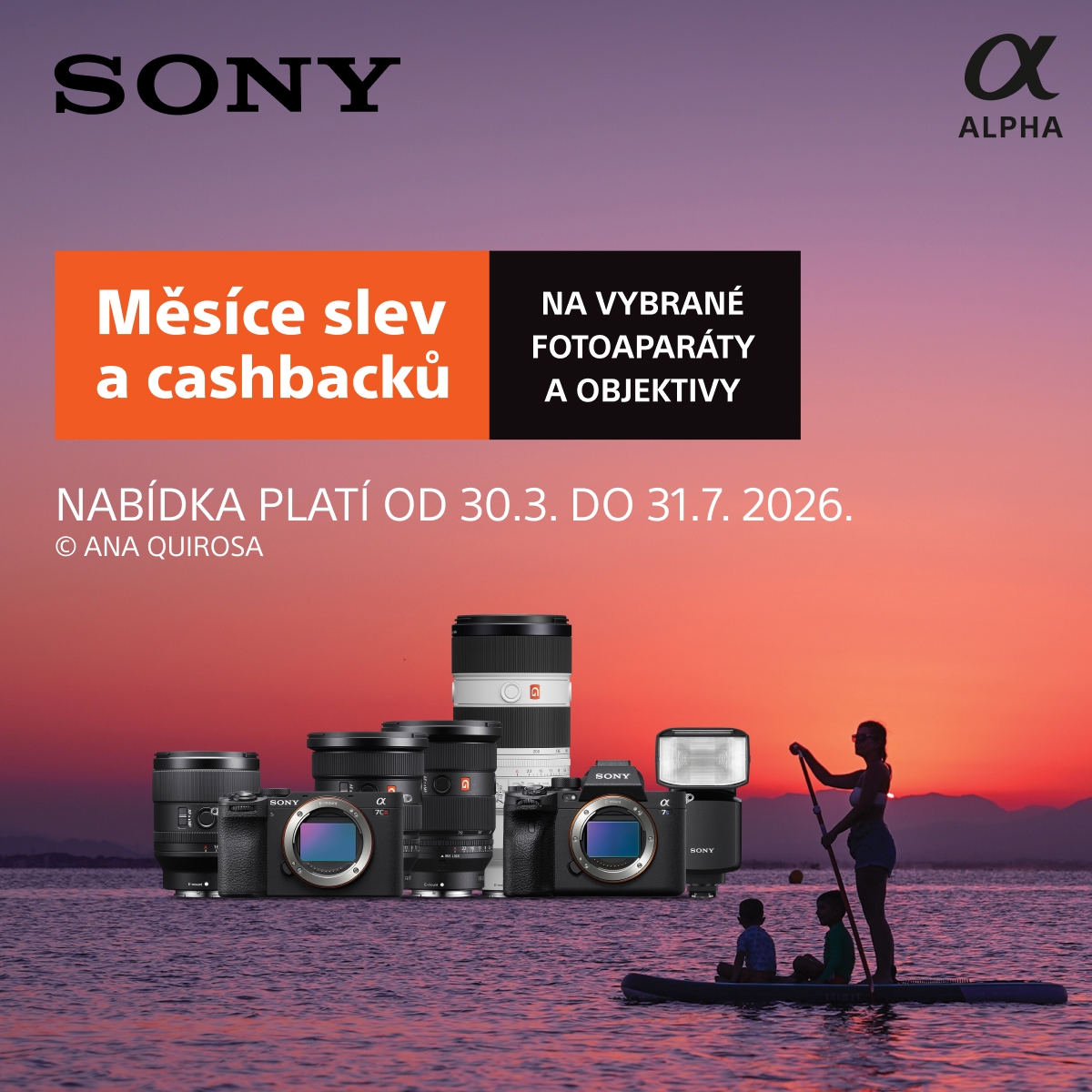 V rámci období od 30. března do 31. července 2026 můžete postupně získat vybrané Sony fotoaparáty, objektivy i příslušenství ve slevě, v setu za zvýhodněnou cenu nebo s cashbackem!