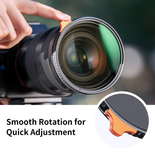 * 【Žádný křížek "X" na snímcích】Žádný křížek "X" na snímcích, společnost K&F využívá technologii samočinného uzamčení rámečku, aby se zabránilo tomuto běžnému problému u širokoúhlých objektivů a variabilních ND filtrů. CNC-neprokluzující rámeček pomáhá hladké instalaci a vyjmutí filtru.