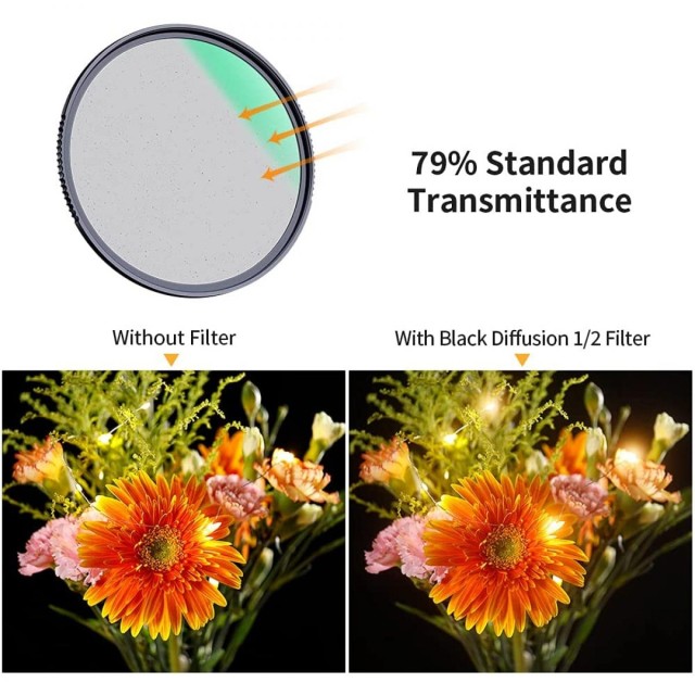 K&F Concept72mm černý mlhový filtr 1/2 Filtr pro speciální efekty Ultra-čirý vícevrstvý filtr s vodotěsným povrchem odolným proti poškrábání a antireflexním filtrem řady Nano-X.