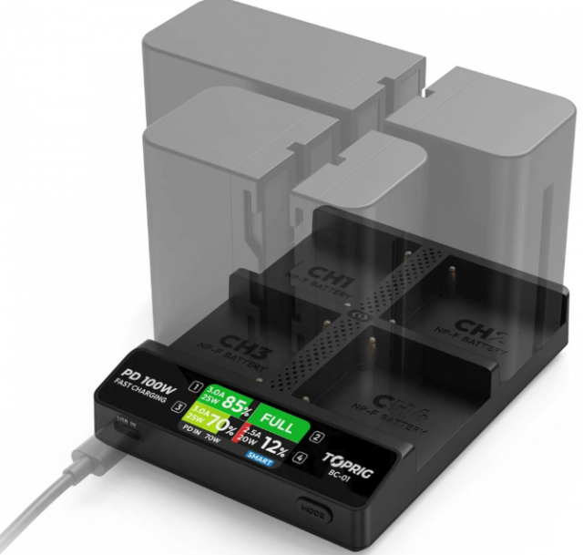 Rychlá nabíječka Accsoon TopRig 100W 4-Bay NP-F je dokonalým řešením pro profesionální fotografy a kameramany, kteří pro své fotoaparáty a příslušenství používají baterie NP-F. Tato nabíječka podporuje čtyři nezávislé nabíjecí pozice, což umožňuje současně nabíjet více baterií NP-F. Její inteligentní režim nabíjení automaticky detekuje typy baterií a upravuje výstupní proudy tak, aby bylo zajištěno optimální nabíjení každé baterie a spolehlivé a bezpečné napájení.