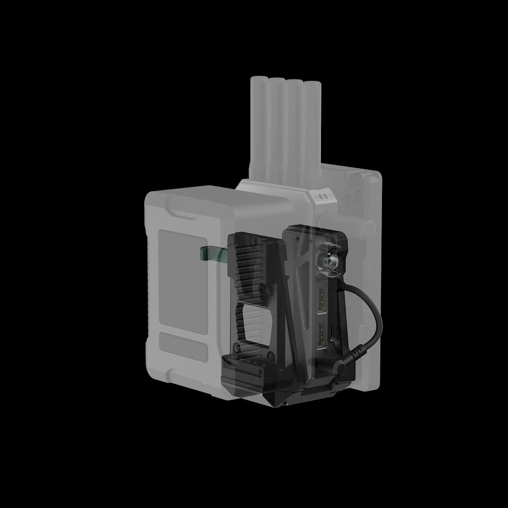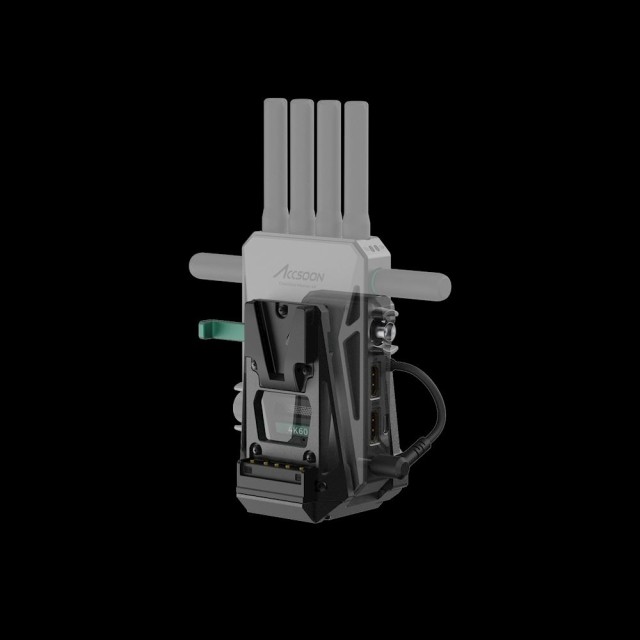 Po instalaci adaptér bezpečně drží vysílač CineView a dodává napájení prostřednictvím krátkého kabelu DC, zatímco napájení z baterie V-mount je přenášeno do kamery. Tento integrovaný design zlepšuje ergonomii, vyváženost a manipulaci s rigem, což jej činí ideálním pro ENG kamery, bezzrcadlové kamery s adaptérovými deskami V-lock a profesionální kamerové systémy, které jsou již vybaveny deskami V-mount.