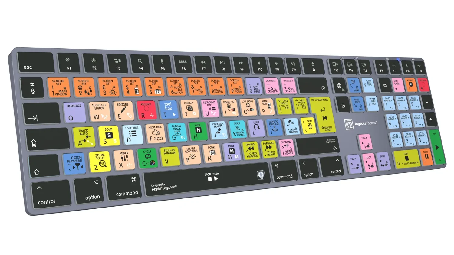 Navrženo pro Apple Logic Pro X – vyrobeno pro MacTato klávesnice Logickeyboard je vaší první volbou při editaci v Logic Pro. Zkratky označené na klávesách a jejich barevně odlišené definice z vás během chvilky udělají mistra ovládání Logic Pro. Klávesnice Logickeyboard je ideální pro hudební producenty, zvukové editory a všechny ostatní, kteří pilně pracují s Logic Pro.