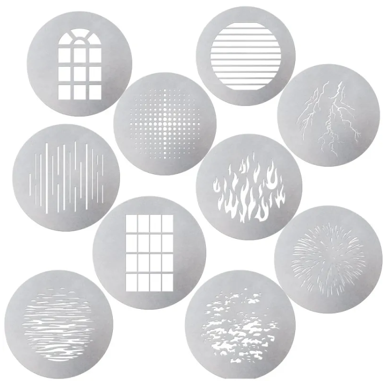 Aputure AP-10GOBOKIT je 10dílná sada gobo určená pro použití s držákem Spotlight Mount od společnosti Aputure, která filmařům umožňuje kreativně tvarovat a navrhovat světlo. S deseti různými klasickými vzory gobo nabízí tato sada univerzální způsob, jak přidat texturu a hloubku vašemu osvětlení.