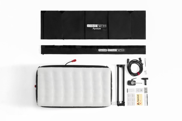 Systém INFINIMAT od společnosti Aputure se vyznačuje svou kompaktností a praktičností. Nafukovací softbox velmi dobře rozptyluje světlo a značně jej změkčuje, zároveň je výrazně menší než jsou klasická difuzorová řešení. Pro skladování stačí INFINIMAT softbox jednoduše vyfouknout. Pack obsahuje rozsáhlé příslušenství včetně světelné mřížky a světelné zástěny.