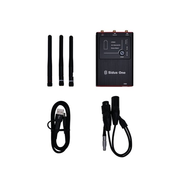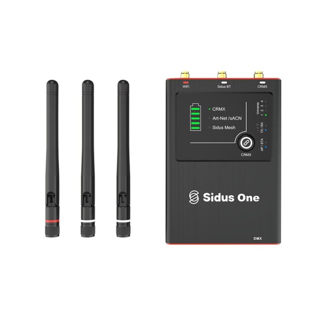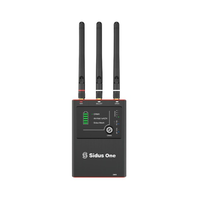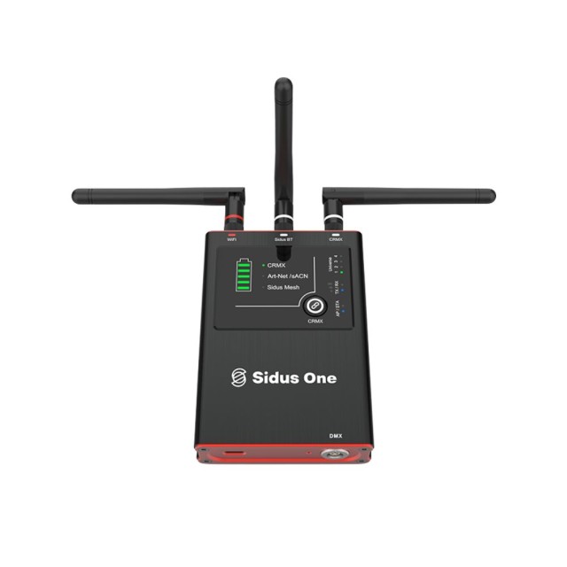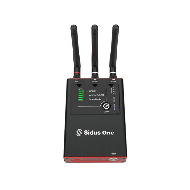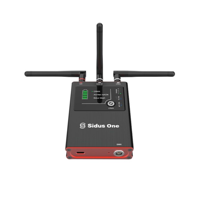 DMX, CRMX, sACN, Art-Net, Bluetooth Mesh – všechna konektivita, kterou potřebujete, v jednom malém dobíjecím boxu. Sidus One se připojuje k jakékoli aplikaci pro osvětlení a je optimalizován pro Sidus Link Pro. Sidus One vysílá DMX a CRMX a může přijímat DMX, CRMX, Art-Net a sACN. Alternativně může být Sidus One použit jako výkonný Sidus Bluetooth Mesh Master Node v Sidus Link.