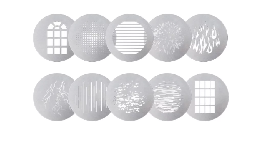 Sada Aputure Spotlight Max 10-Piece Gobo Kit (velikost A) obsahuje deset kreativních gobo, které jsou navrženy tak, aby promítaly dynamické vzory a obrazy a vylepšovaly scény vizuální hloubkou a texturou.