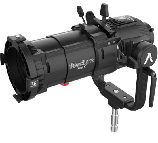 Sada Aputure Spotlight Max s objektivem 36° je profesionální projekční systém určený pro film, televizi a vysílání. Poskytuje přesné tvarování světla s vysokou přesností CRI/TLCI, kompatibilitu s Bowens a zahrnuje šablony gobo, barn doors a držák gelu pro kreativní ovládání.