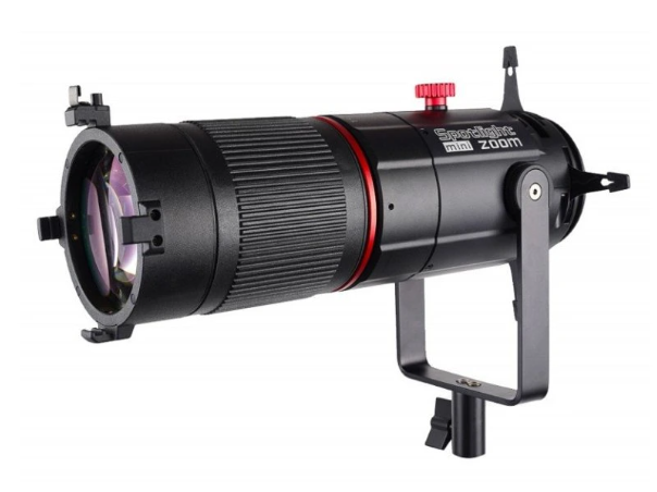 Aputure Spotlight Mini Zoom pro LS 60d a 60x je profesionální optický projekční objektiv s 2× optickým zvětšením, variabilním úhlem paprsku 15–30°, vestavěnými uzávěry, zasouvací clonou a podporou gobo velikosti M, který umožňuje přesné a opakovatelné tvarování světla pro filmové, televizní a studiové produkce.