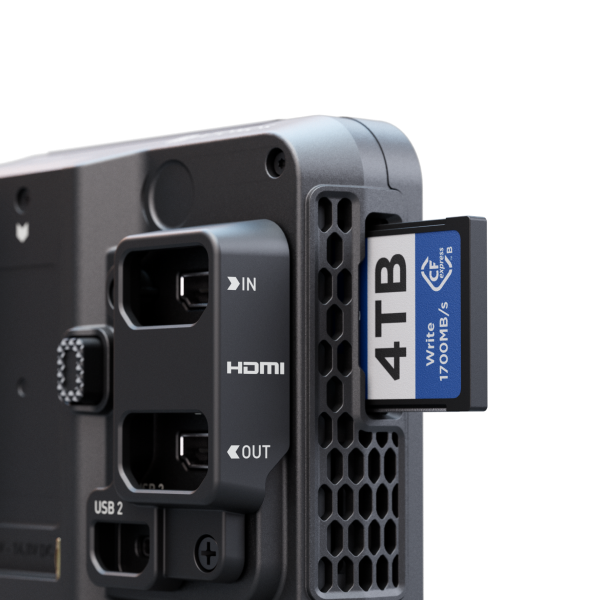 Zařízení je vybaveno 5" HDR dotykovým displejem s jasem 1500 nitů pro vynikající viditelnost v interiéru i exteriéru. Umožňuje přímý HDMI záznam do formátů Apple ProRes a ProRes RAW přímo z kamery.