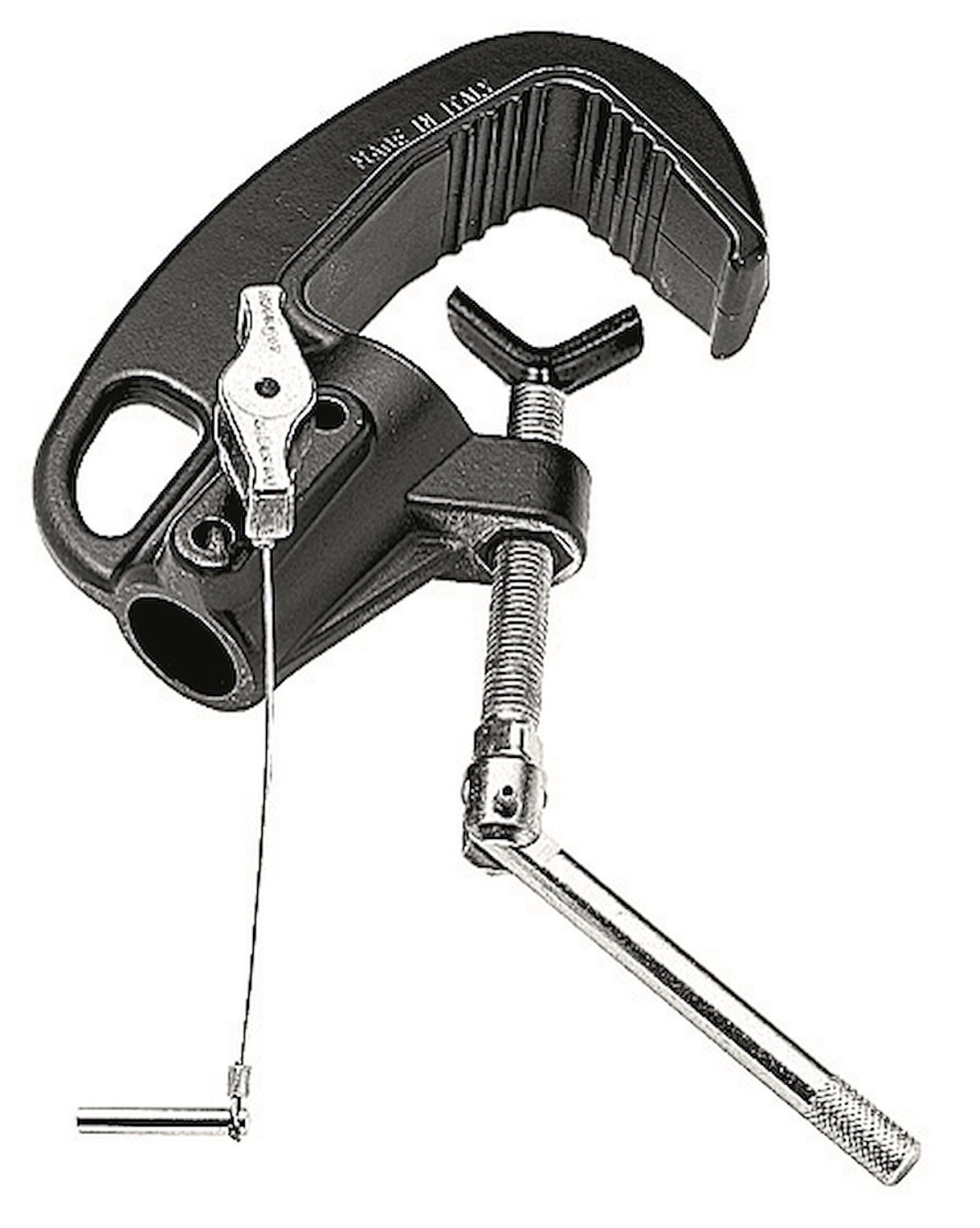 Tato svorka na trubky funguje na průměry od 20 mm do 55 mm, má 28mm objímku a lankový zámek, který udrží až 250 kg. Toto příslušenství je vyrobeno z gravitačně litého hliníku, díky čemuž je mimořádně odolné a robustní a je ideální pro držení velkých světel. Je vybaveno rukojetí pro snadné uzamčení a bezpečnostním kabelovým zámkem.