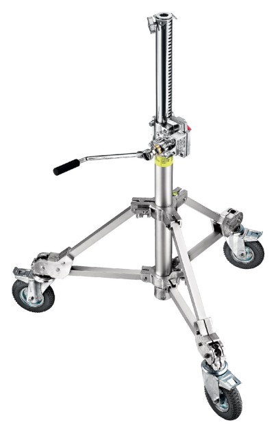 Díky pěnovým brzděným kolečkům s více směry pohybu umožňuje B7018 snadný pohyb po různých površích a zároveň přesné ovládání polohy. Stojan je vybaven robustním převodovým systémem s odnímatelnou ráčnovou rukojetí pro plynulé zvedání a spouštění těžkých břemen. Když se ráčnová rukojeť nepoužívá, lze ji pohodlně uložit na boku horního odlitku připevněného k dolnímu sloupu. Skládací délka 126 cm a široký průměr základny 120 cm zajišťují jak přenosnost, tak stabilitu.