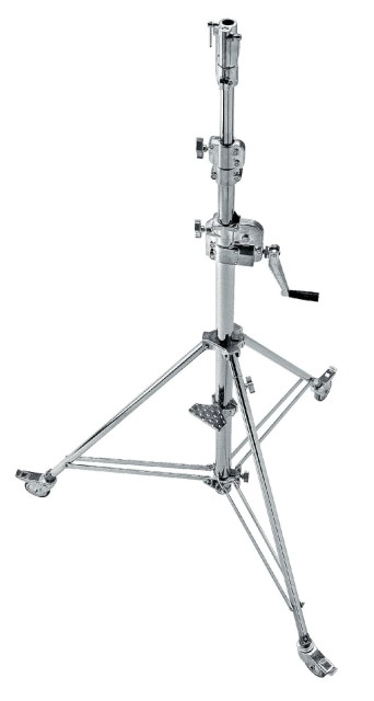Stojan Avenger B6030CS Wind-Up Stand je robustní a univerzální stativ určený pro profesionální fotografování, filmování a osvětlení. Je vyroben z pochromované oceli a nabízí odolnost a stabilitu i při velkém zatížení. Třídílná konstrukce v kombinaci s navíjecí rukojetí umožňuje plynulé a přesné nastavení výšky od složeného stavu 175 cm až po maximální výšku 2,96 m. Jedna nastavitelná vyrovnávací noha zajišťuje stabilitu na nerovném terénu, zatímco brzděná kolečka usnadňují přesun stativu mezi pracovišti a jeho bezpečné zajištění na místě. S maximální nosností 30 kg spolehlivě unese fotoaparáty, světla a další profesionální vybavení, což z něj činí spolehlivý nástroj pro studia a natáčení na místě.