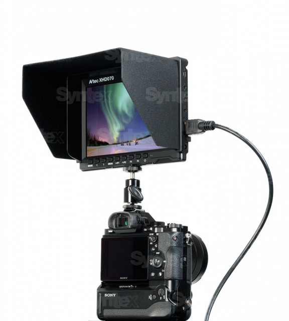 AVtec XHD070 a XHD070Pro jsou profesionální, velmi lehké monitory se 7" IPS LCD displejem vysoké kvality. Tyto monitory vám umožní jasně se soustředit na záběry a eliminovat dohady o rámování. Zvětšují malou obrazovku zabudovanou ve fotoaparátu na mnohem větší displej, který umožňuje snadnější sledování a nenamáhá oči. S jasem 400 cd/m2, kontrastním poměrem 800:1 a pozorovacími úhly 178° vertikálně i horizontálně je skvělým nástrojem pro fotografy i kameramany.