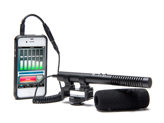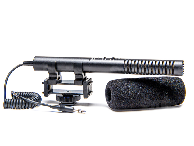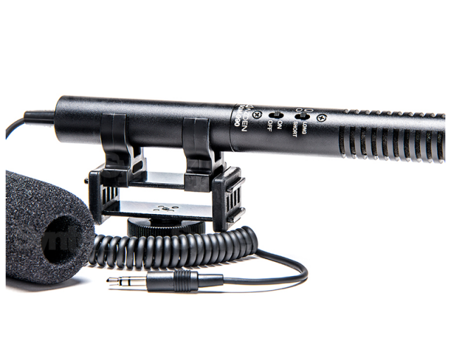 Puškový mikrofon s přepínatelnou směrovou charakteristikou pro malé kamery/DSLR/DSLM a telefony/tablety (s přiloženou TRRS redukcí).