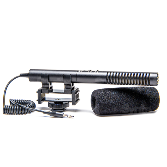 Puškový mikrofon s přepínatelnou směrovou charakteristikou pro malé kamery/DSLR/DSLM
