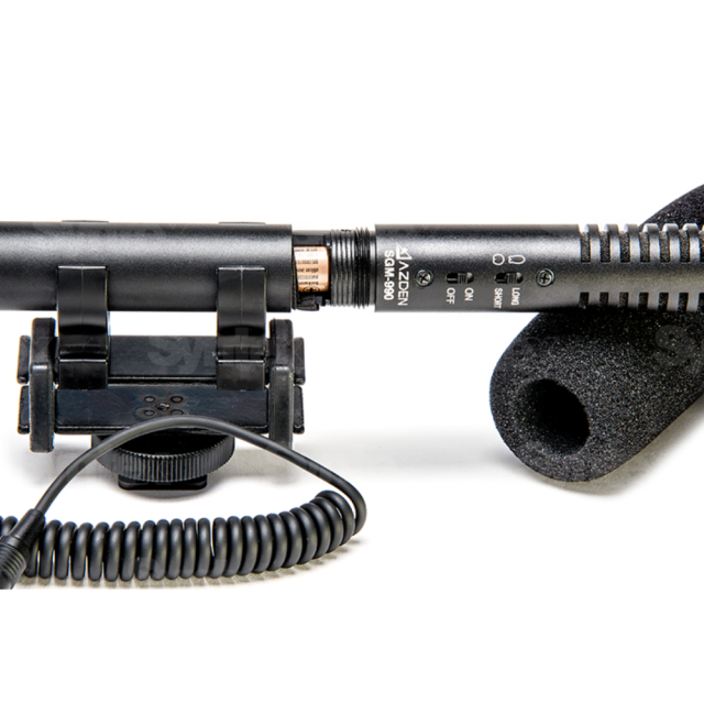 Azden SGM-990+i je 15cm „puškový“ mikrofon s přepínatelnou směrovou charakteristikou určený pro DSLR/DSLM kamery (3,5mm jack) a mobilní zařízení (kompatibilní s přiloženou TRRS redukcí, tabulka kompatibility zde). Jeho unikátní vlastností je možnost přepínat mezi úzkou a širokou směrovou charakteristikou – režim „Long“ je určen pro záznam zvuku z větší vzdálenosti a velké potlačení zvuku ze stran, kardioidní mód „Short“ slouží k natáčení na kratší vzdálenosti. Oba režimy poskytují dobré potlačení zvuku ze zadní polosféry i ze stran.