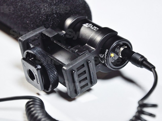 Mikrofón Azden SGM-DSLR je napájaný jednou LR-44 alkalickou batériou a súčasťou balenia je aj odpružený „hot-shoe“ držiak, penová protiveterná ochrana ako aj prepojovací 3,5mm kábel.
