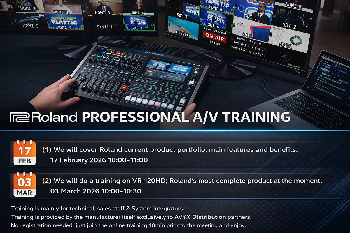 We are pleased to invite you to join two exclusive Roland Professional A/V online trainings, delivered directly by the manufacturer for AVYX Distribution partners.