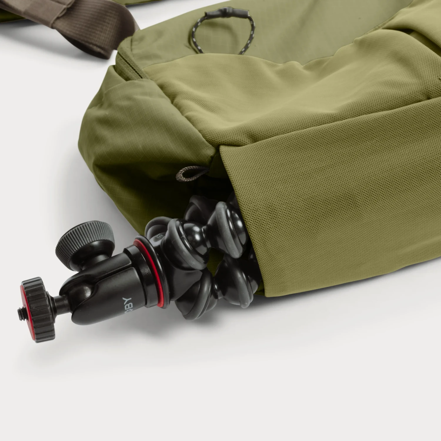 Do popruhu je zabudovaná bandolierová kapsa s lehkým polstrováním a samostatným klipem, aby byl telefon, klíče, AirPody nebo mobilní objektivy vždy po ruce.
