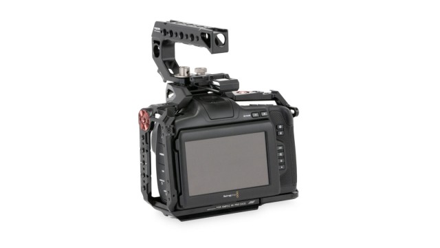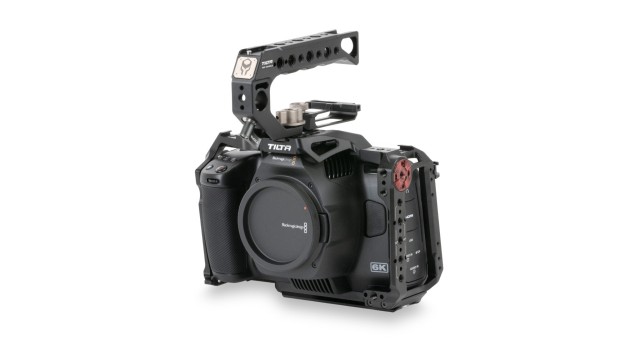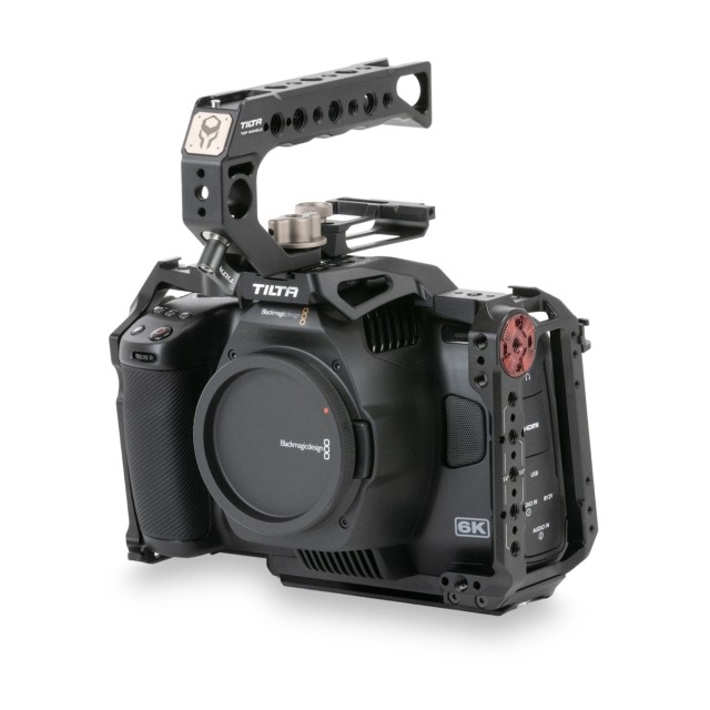 Při použití poloviční klece lze spodní desku rozšířit tak, aby podporovala bateriový grip Black Magic Design. Při použití Battery Gripu v nastavení Half Cage lze nainstalovat přiložený držák 15mm tyče pro podporu 15mm tyčí před tělem fotoaparátu. Přiloženou rychloupínací horní rukojeť lze připevnit k horní části klece pomocí přijímače studené patky a šroubu ¼"-20. To poskytuje mimořádně bezpečné spojení pro pohodlnou manipulaci a ovládání systému fotoaparátu. Horní rukojeť je vybavena dalšími závity ¼"-20, přijímači studené patice a horizontálním držákem 15mm tyče pro upevnění externích monitorů nebo EVF. Držák jednotky SSD se připevňuje přímo ke kleci pomocí šroubu 1/4″-20 a polohovacího kolíku.