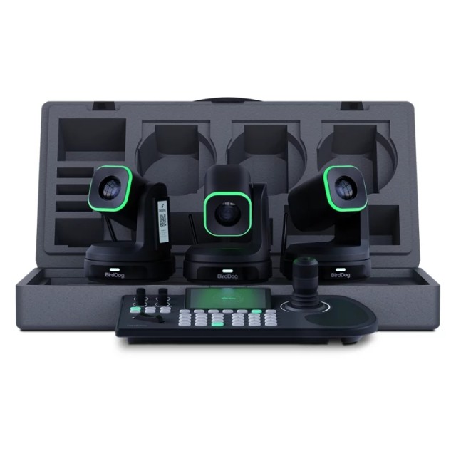 BirdDog X1 Bundle Black přináší studiovou kvalitu záznamu a ovládání v jediném, produkčně připraveném balíčku. Tři PTZ kamery X1 se kombinují s hmatovým ovladačem KBD, což zjednodušuje multi-kamerové vysílání, streamování a firemní AV přes sítě NDI®, HDMI nebo USB-UVC.