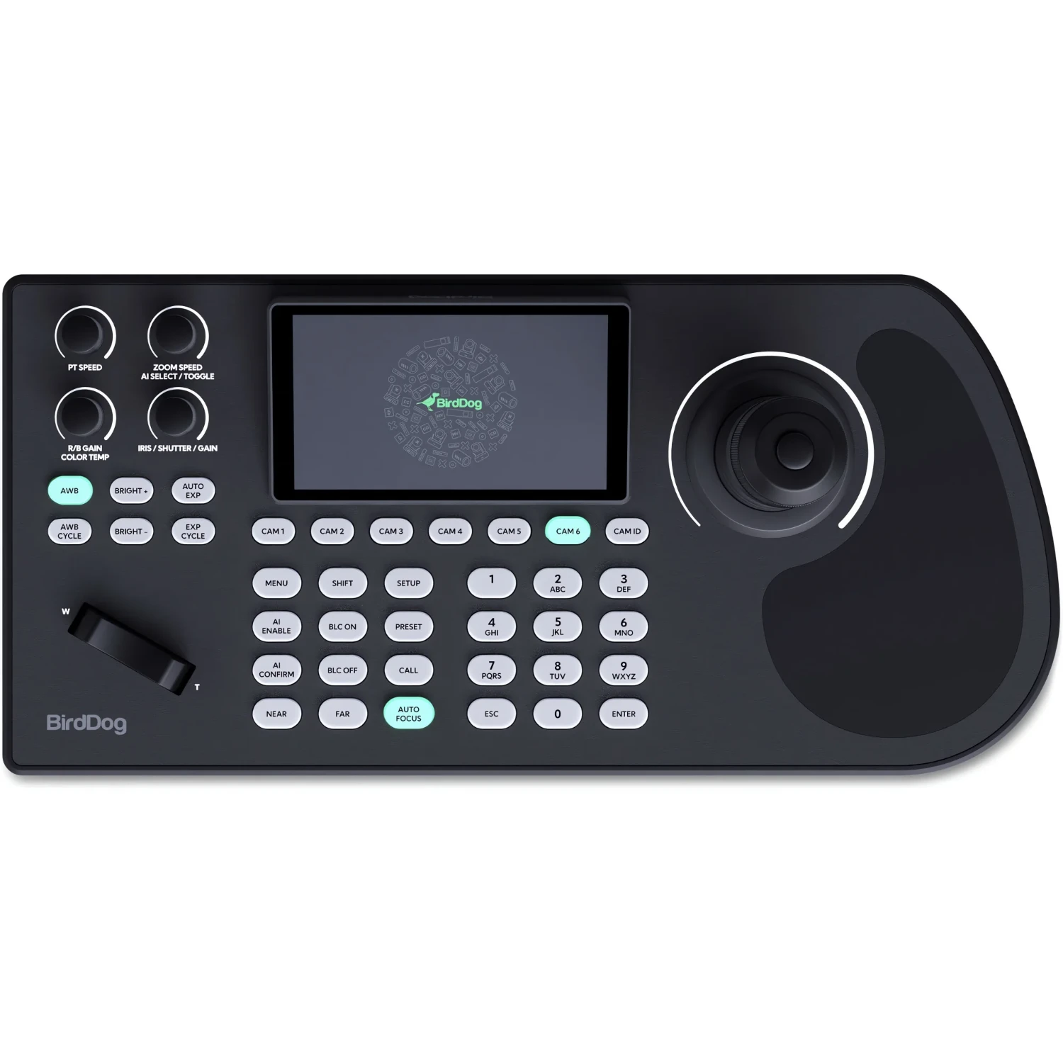 Ovladač BirdDog KBD nabízí operátorům PTZ kamer odolnou a ergonomickou konstrukci, velký displej pro práci s více kamerami a přímý přístup ke klíčovým funkcím. Díky vestavěnému tally zobrazení a fyzické hmatové odezvě při přepínání kamer je jeho ovládání intuitivní a zároveň ekologické – je vyroben z plastů pocházejících z oceánského odpadu (Ocean-Bound Plastics) a recyklovatelného leteckého hliníku. Konektivita NDI, VISCA, ONVIF, RS-232 a RS-422 zajišťuje maximální univerzálnost bez ohledu na používaný protokol.