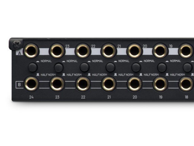 I na zadním panelu je 48 konektorů TRS 6,3 mm ve dvou řadách A a B, které odpovídají konektorům na předním panelu. Pomocí přepínače lze pro každou dvojici konektorů A-B nastavit mód Full-Normal nebo Half-Normal.*