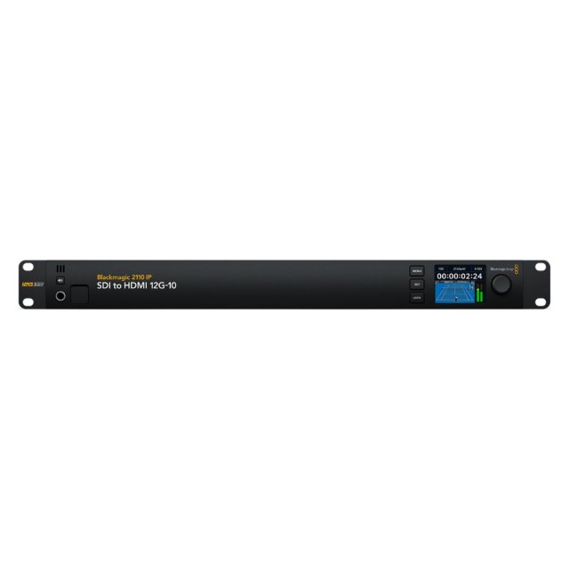 Blackmagic 2110 IP SDI to HDMI 12G-10 převádí 12G-SDI nebo SMPTE-2110 video na HDMI v rack mount designu. Nabízí nejvyšší kvalitu konverze mezi všemi video standardy SD, HD a Ultra HD, včetně podpory 3D LUT pro přesnou kalibraci HDMI displejů. Dostupnost se očekává na červen 2025.