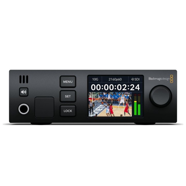 Blackmagic 2110 IP UpDownCross 12G je špičkový konvertor standardů určený pro živou produkci a televizní vysílání. Má elegantní design s LCD displejem, vestavěným reproduktorem a výstupem pro sluchátka. Na LCD displeji najdete také nabídky pro nastavení video standardu.