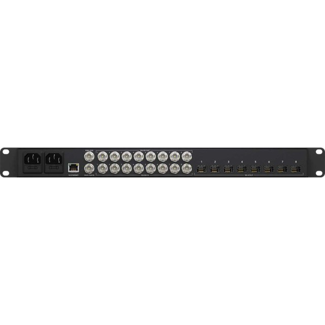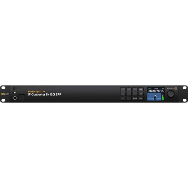 Blackmagic Design 2110 IP Converter 8x12G SFP umožňuje bezproblémovou konverzi 3 samostatných zařízení 3G-SDI na IP videosystémy SMPTE 2110. Tento převodník je vybaven 10G ethernetovým připojením a podporuje 3 vstupní a 3 výstupní video kanály současně. Každý kanál má nezávislé vstupy a výstupy SDI, což umožňuje připojení až 6 různých zařízení SDI. Díky smyčkovým výstupům pro každý vstup 3G-SDI se snadno integruje do stávajících sestav SDI. Je vybaven referenčním výstupem časovaným podle hodin PTP 2110 a obsahuje přední panel s barevným LCD displejem pro monitorování, nabídky a diagnostiku.