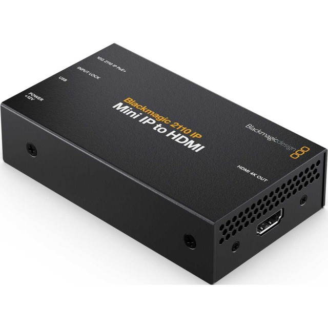 Společnost Blackmagic Design nabízí širokou škálu IP video produktů SMPTE-2110, včetně převodníků, video monitorů, audio monitorů a dokonce i kamer. Navíc podporují rozlišení Ultra HD pomocí levného 10G Ethernetu. Většina modelů konvertorů je obousměrná, takže se skvěle hodí ke kamerám, když uživatelé potřebují dodatečný kanál pro zpětný náhled. Modely pro montáž do racku mají elegantní design s barevným LCD displejem pro monitorování, procházení menu a diagnostiku. Všechny modely odpovídají standardu SMPTE ST-2110 pro IP video, včetně PTP synchronizace, a dokonce podporují NMOS, takže uživatelé mohou vytvořit připojení pomocí panelu video routeru. IP videoprodukty Blackmagic SMPTE-2110 se vyznačují různým provedením v závislosti na jejich použití. Modely 2110 IP Mini jsou malé, takže je lze skrýt za zařízení. Zatímco modely pro montáž do racku mají elegantně řešené přední panely s displejem LCD, takže uživatelé mohou přijít a měnit nastavení přímo z předního panelu.