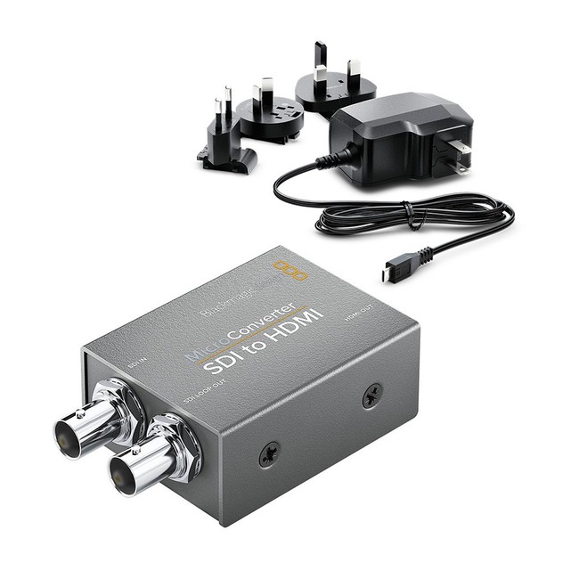 Miniaturní převodníky řady Blackmagic Micro Converter nabízejí velice malé, „kapesní” rozměry při zachování špičkové kvality konverze. Model Blackmagic Micro Converter SDI to HDMI převádí signál z profesionální techniky, např. z kamer, videí, režií nebo routerů, na normu HDMI pro náhled videa na televizních obrazovkách nebo pomocí projektorů. Balení obsahuje napájecí apdáptér.