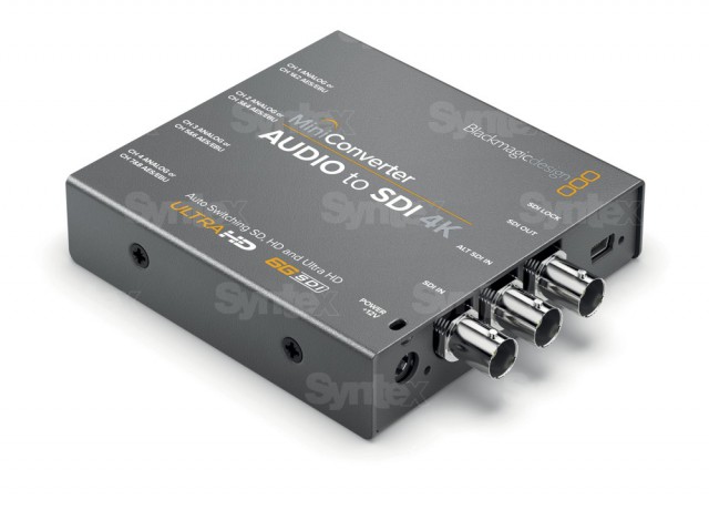 Mini Converter Audio to SDI 4K umožňuje embedovat čtyři kanály analogového zvuku nebo osm kanálu AES/EBU digitálního audia do SDI signálu. Díky tomu mohou uživatelé snadno vkládat zvuk z mixážních pultů nebo analogových videorekordérů do SDI signálu!