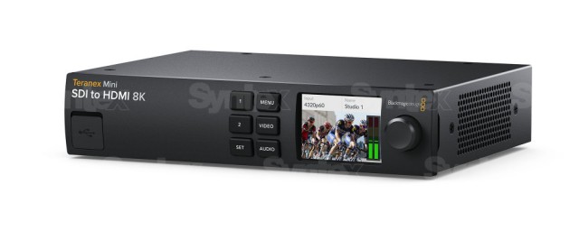 LCD displej čelního panelu zobrazuje nejen náhled videa, ale též audio metry s VU nebo PPM balistikou či vstupní formát; zadní panel hostí rozhraní Quad-Link 12G-SDI pro podporu HD, Ultra HD i 8K rozlišení. Nechybí rovněž 4 HDMI výstupy pro 8K televizory a projektory s Quad-HDMI vstupy a samozřejmě i funkce pro down-konverzi 8K videa do Ultra HD nebo HD rozlišení i automatickou konverzi mezi formáty 2SI (2-Sample Interleave) a Square Division. Model Teranex Mini SDI to HDMI 8K nabízí podporu nejnovějších HDR standardů vč. PQ a Hybrid Log Gamma (HLG) formátů dle norem ST2108-1, ST2084 a ST425, samozřejmostí je podpora barevných prostorů Rec.2020 a Rec.709 i formátu DCI-P3. V prodeji od 5/2019.