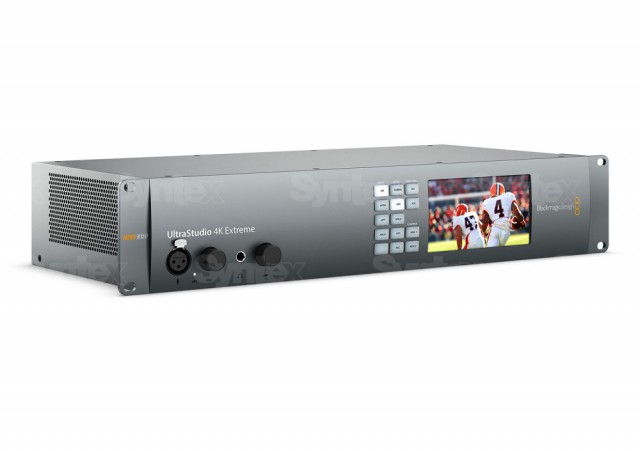 Model UltraStudio 4K Extreme 3 lze zabudovat do přístrojových skříní, stejně snadno jej mohou uživatelé provozovat přímo na postprodukčních pracovištích: Atraktivní hliníkový čelní panel přístroje hostí barevný displej a tlačítka pro volbu zdrojů audio a video signálu. Zadní panel je osazen prakticky všemi myslitelnými video a audio rozhraními, včetně 12G-SDI, HDMI 2.0, analogových komponentních i kompozitních, symetrických XLR a AES/EBU, rozšiřujících slotů pro optické SDI moduly apod. Samozřejmostí je duální napájecí zdroj pro vysokou provozní bezpečnost nebo rozhraní RS-422 pro dálkové ovládání videí.