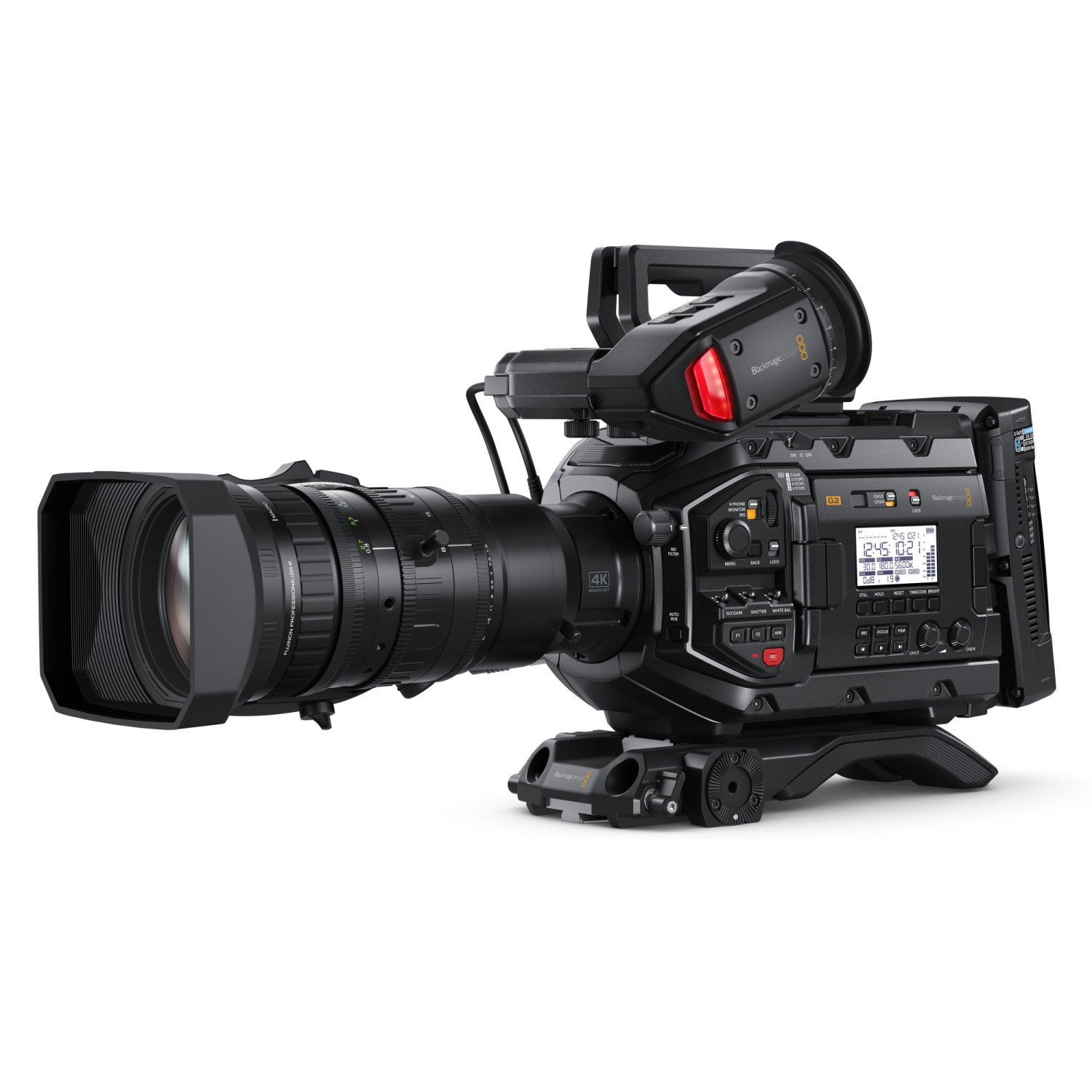 Blackmagic URSA Broadcast G2 je vysoce výkonná kamera navržená pro televizní zpravodajství a dokumentaristiku i tvorbu online pořadů: sdružuje funkce zpravodajské ENG/EFP 4K kamery pro nasazení v terénu, 4K studiové kamery i 6K kamery pro natáčení filmů/dokumentů, seriálů a reklamních znělek. Obrovskou výhodou pro uživatele z řad TV studií je možnost použít stávající B4 objektivy i standardní baterie. Navíc lze videa zaznamenávat na běžné SD/UHS-II a CFast 2.0 karty, a také externí USB disky v běžných formátech H.265, Apple ProRes a Blackmagic RAW. Díky tomu je vysoce kompatibilní s aplikacemi pro střih a správu video dat. Navíc dovoluje vyměnit bajonet B4 za jiný (dodává se vč. bajonetu EF) – žádná jiná televizní kamera nenabízí takovou flexibilitu!