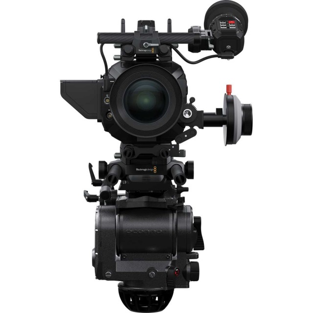 Díky široké škále standardních průmyslových připojení je URSA Cine ideální pro špičkovou filmovou produkci. Sedmipinový konektor Lemo a třípinový konektor Fischer na přední straně zajišťují spuštění/zastavení záznamu a napájení 24 V, takže jsou ideální pro palubní příslušenství, jako jsou motory pro zaostřování. Napájení kamery zajišťuje standardní 24V 8kolíkový konektor Lemo a navíc je vzadu další 2kolíkový 12V konektor Lemo pro příslušenství s nižším napětím.