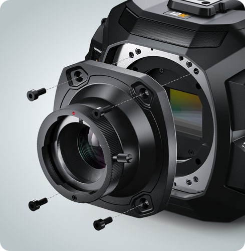 Bajonet objektivu pro kamery Blackmagic URSA Cine 12K umožňuje používat vysoce kvalitní broadcastové B4 objektivy pro živou produkci. Obsahuje optiku speciálně navrženou pro sladění se senzorem URSA Cine RGBW.