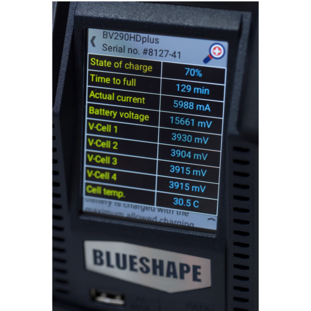 Současné nabíjení, až 4 instalovatelné baterie, zapínání a vypínání ventilátoru, DC-UPS - nepřerušované napájení AUX, 3,5" dotykový displej