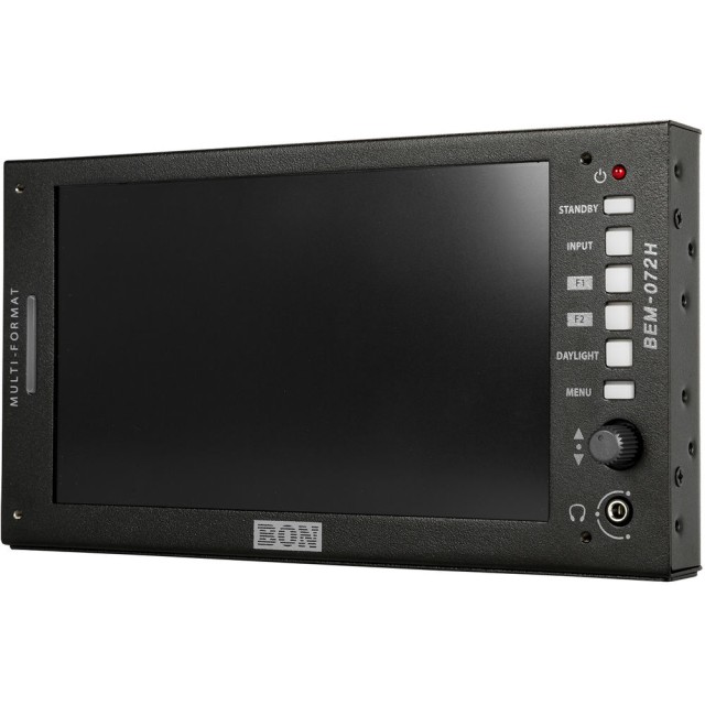 7" kamerový monitor BON BEM-072H s vysokým jasem má kompaktní rozměry, nikoli však funkce, a je vybaven pro profesionální použití na kameře. Vstupy SDI a HDMI umožňují tomuto monitoru pracovat s digitálními zrcadlovkami, kompaktními videokamerami a filmovými kamerami. Displej LCD s podsvícením LED má rozlišení 1024 x 600 a přizpůsobí se zdrojům až do rozlišení 2K.