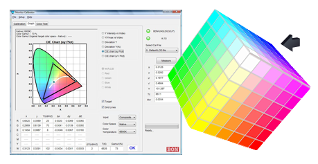 Kalibrácia Farieb LCD - Obrazovka monitora je kalibrovaná pre precízne zobrazenie farieb. Ponúka možnosť zvoliť teplotu farieb (3200k, 5400k, 6500k, 9300k) alebo zvoliť úžívateľskú hodnotu. Vzhľadom k rovnakej reprezentácii farieb a možnosti korekcie farieb medzi dvomi alebo viac monitormi je ideálny pre kooperatívnu prácu.