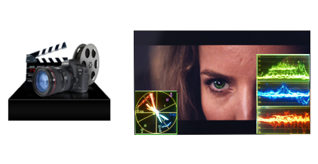 Priebeh vlnových dĺžok/Vektroskop - Rozsah jasu a farieb môžete monitorovať pomocou Priebehu vlnových dĺžok/Vektroskopu. Môžete sledovať presné hladiny Y/Cb/Cr/R/G/B.