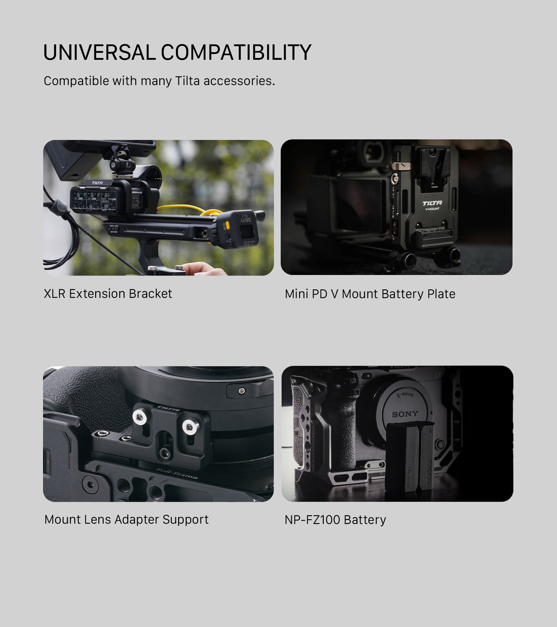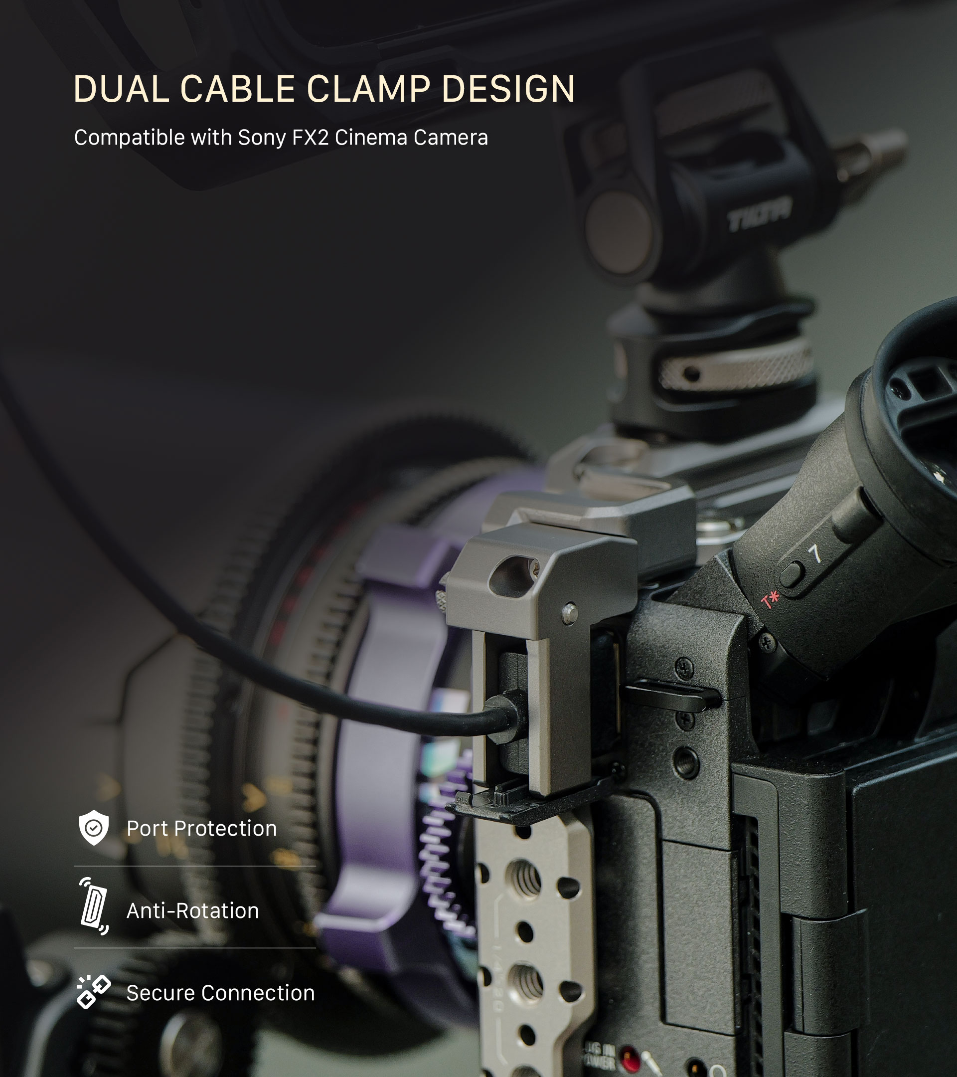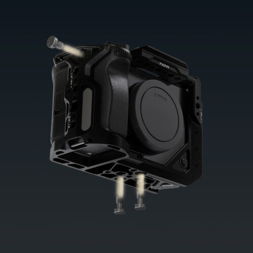 Klec obsahuje dvě kabelové svorky, které zvyšují bezpečnost kabelů HDMI a USB-C a jsou vybaveny praktickými šrouby, které lze utahovat palcem bez použití nástrojů. Dokonalé přizpůsobení této klece zachovává přístup ke všem portům a funkcím, včetně EVF fotoaparátu, zatímco její modulární design zajišťuje, že podporuje řadu originálního příslušenství, jako je horní rukojeť Sony XLR.