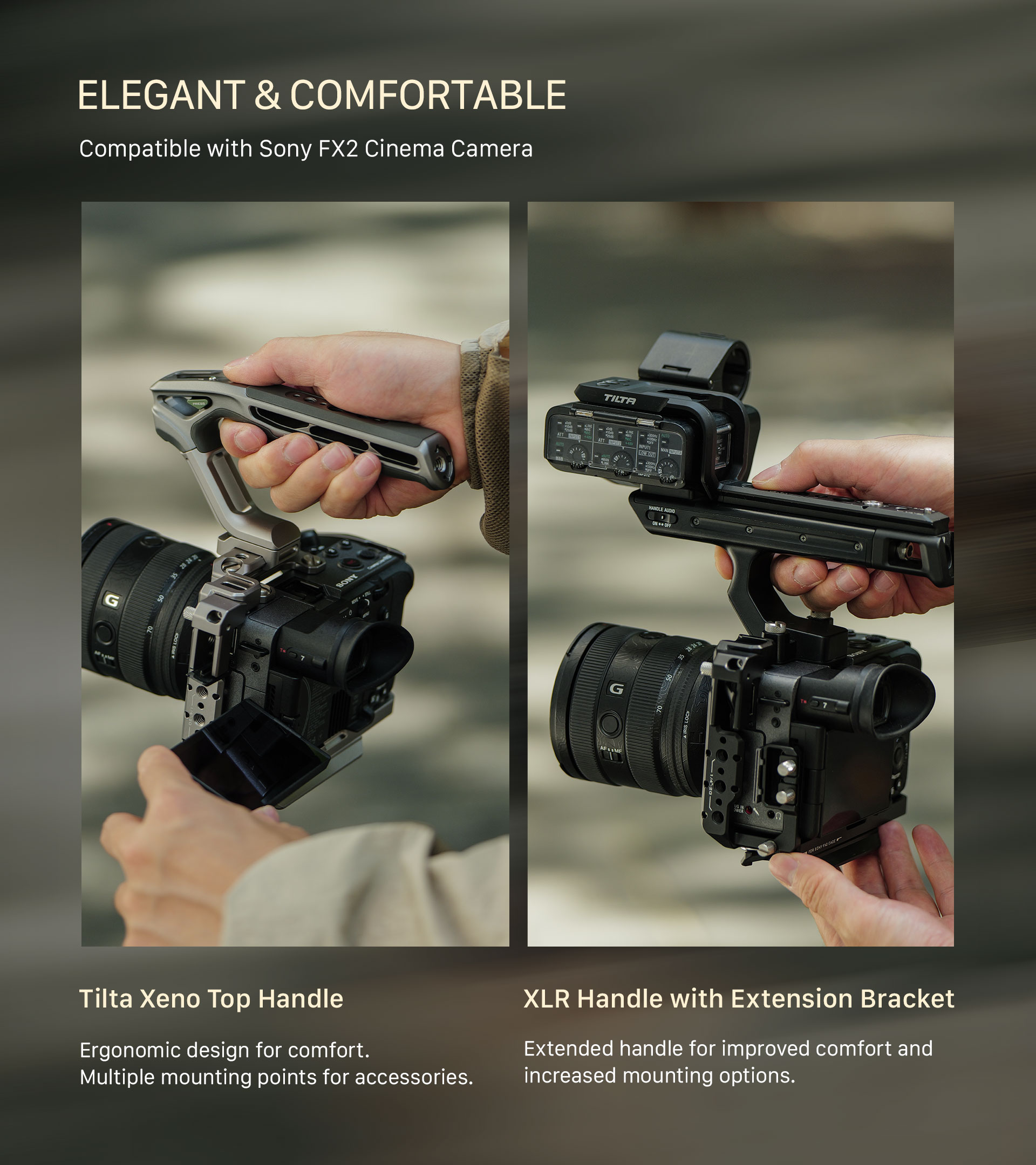 Součástí balení je také pokročilá napájecí rukojeť, která se připojuje ke kleci pomocí NATO Rail a napájí příslušenství a podporuje ovládání spuštění a zastavení pomocí přiloženého kabelu. Nastavitelná rotace a přídavný řemínek na ruku poskytují výjimečný komfort a flexibilitu při ovládání Sony FX2.