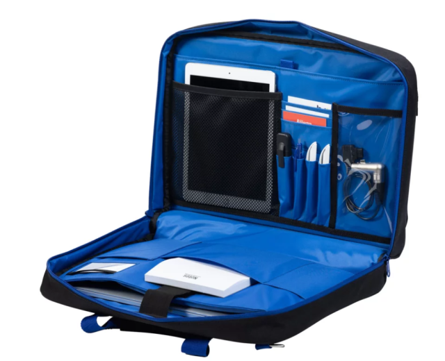 Měkký polstrovaný interiér s několika kapsami a síťovanými kapsami pro přehledné uspořádání