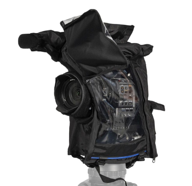 RainCover Small je spolehlivý kryt proti dešti pro malé kinofilmové a full-frame fotoaparáty. Je vybaven integrovaným krytem pro monitor hledáčku a rychle se připevňuje k fotoaparátu pomocí suchého zipu a zipů.