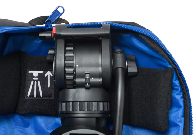 Intuitivní ikona jasně označuje správné umístění fluidní hlavy, takže balení je rychlé a bezproblémové. Pro větší pohodlí je taška tripodBag Lite vybavena polstrovaným ramenním popruhem ze semiše a dvěma semišovými držadly pro pohodlné nošení. Boční kapsa na zip s průhledným okénkem umožňuje rychlou identifikaci tašky a jejího obsahu, což je ideální pro rušná produkční prostředí a cestování.
